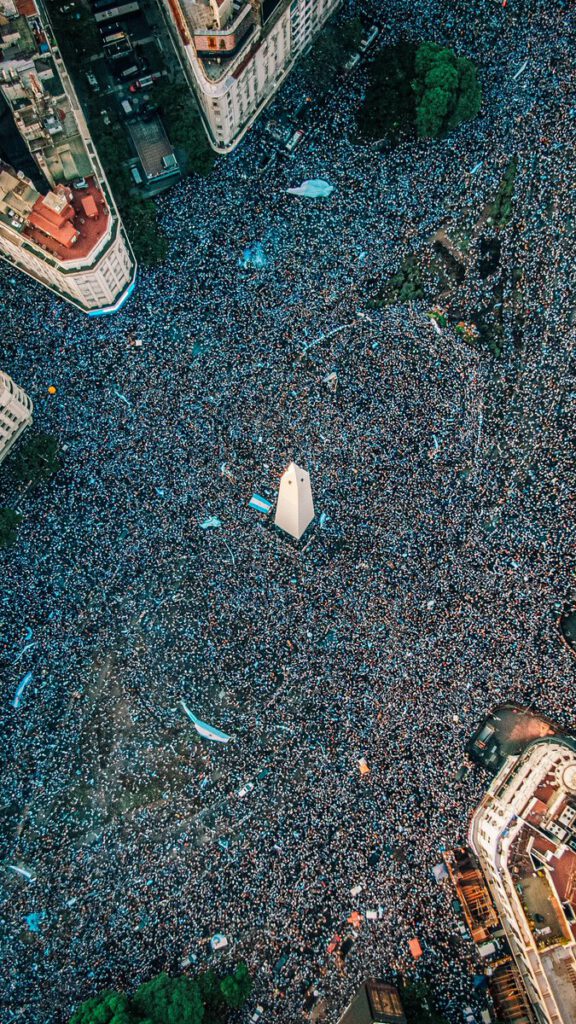 Durante os festejos dos argentinos após a conquista do Mundial 2022, alguns adeptos subiram ao topo do Obelisco em Buenos Aires, com um deles a cometer um ato de loucura ao sair para o exterior para tirar uma selfie a quase 70 metros de altura.