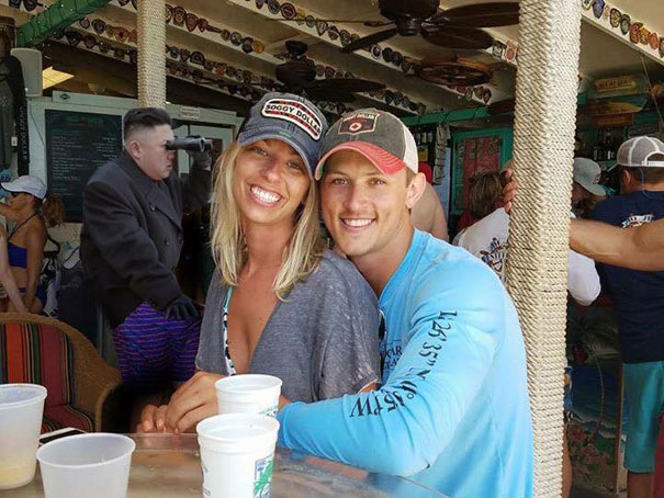 Foi por essa razão que um casal pediu ajuda aos internautas para que fizessem um pequeno retoque na sua fotografia, remover o desconhecido que está sem camisa atrás do sorridente casal.