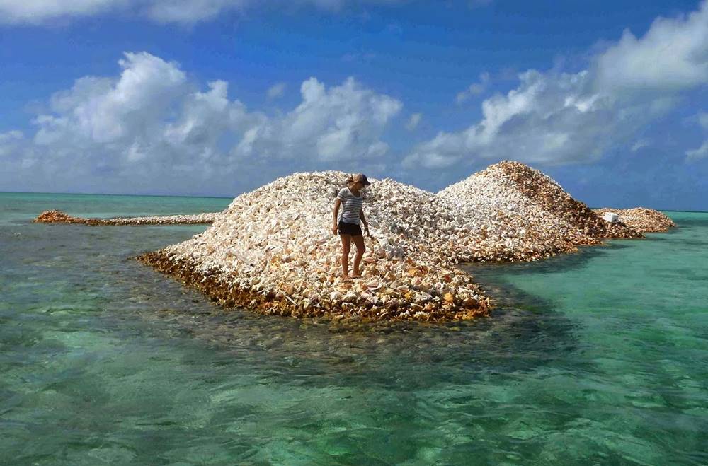 Por milhares de anos, os pescadores locais mergulharam nas águas rasas deste lado de Anegada em busca dessas criaturas marinhas comestíveis, sendo que muitos desses pescadores acabaram por lançar as conchas no mesmo local, dando origem a uma espécie de ilha artificial.