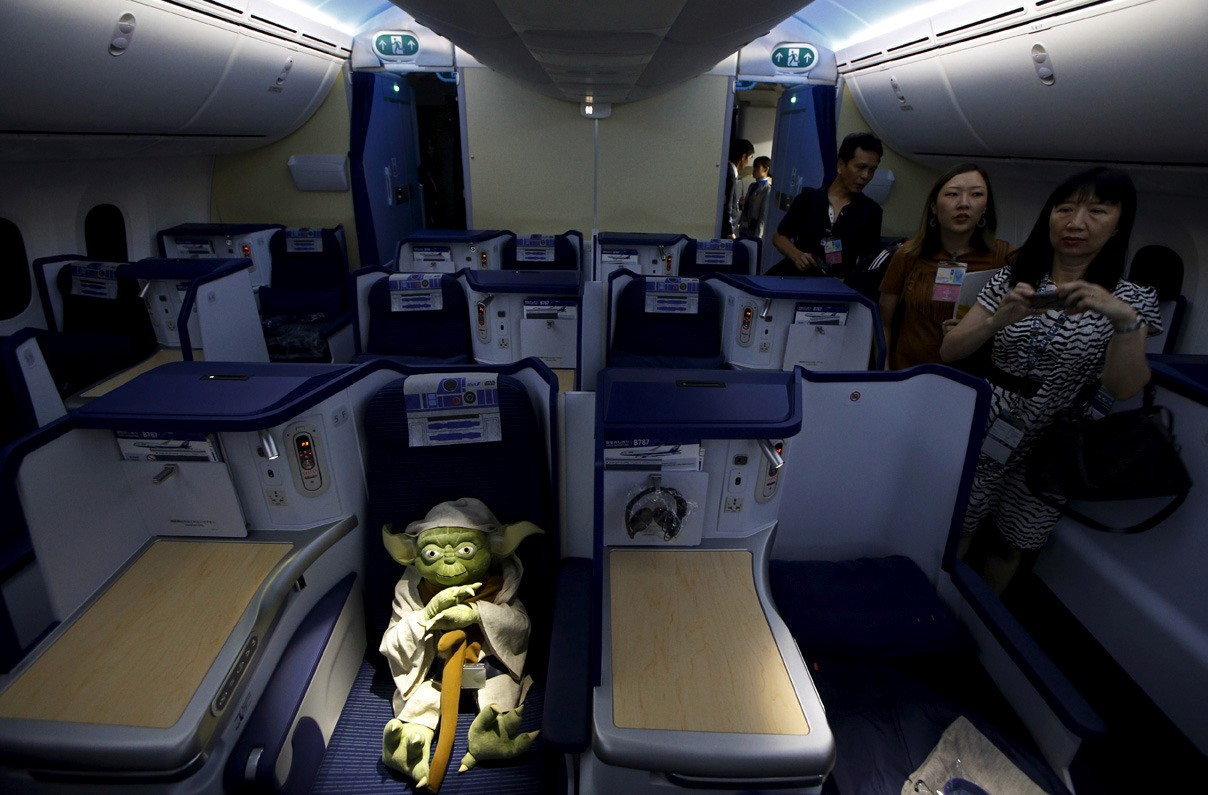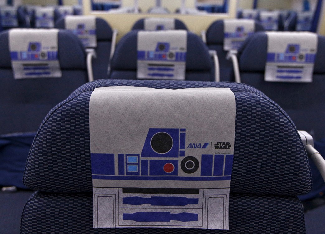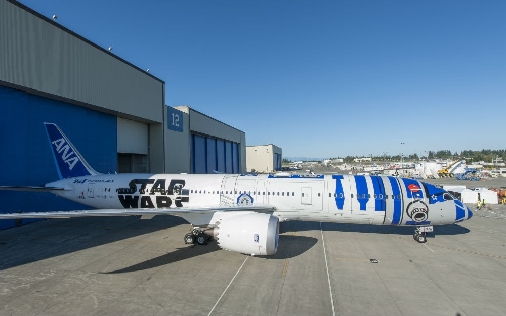 O Avião Boeing 787 da maior companhia área do Japão, All Nippon Airways (ANA), recebeu uma pintura igual à do robô R2-D2, famoso droide da Star Wars, e onde todos os fão da saga vão querer viajar, mas também o interior é diferente dos demais e tem pormenores que mais uma vez reforçam a imagem do robô R2-D2. O jato faz parte de um projeto que irá durar cinco anos em homenagem à saga criada por George Lucas.