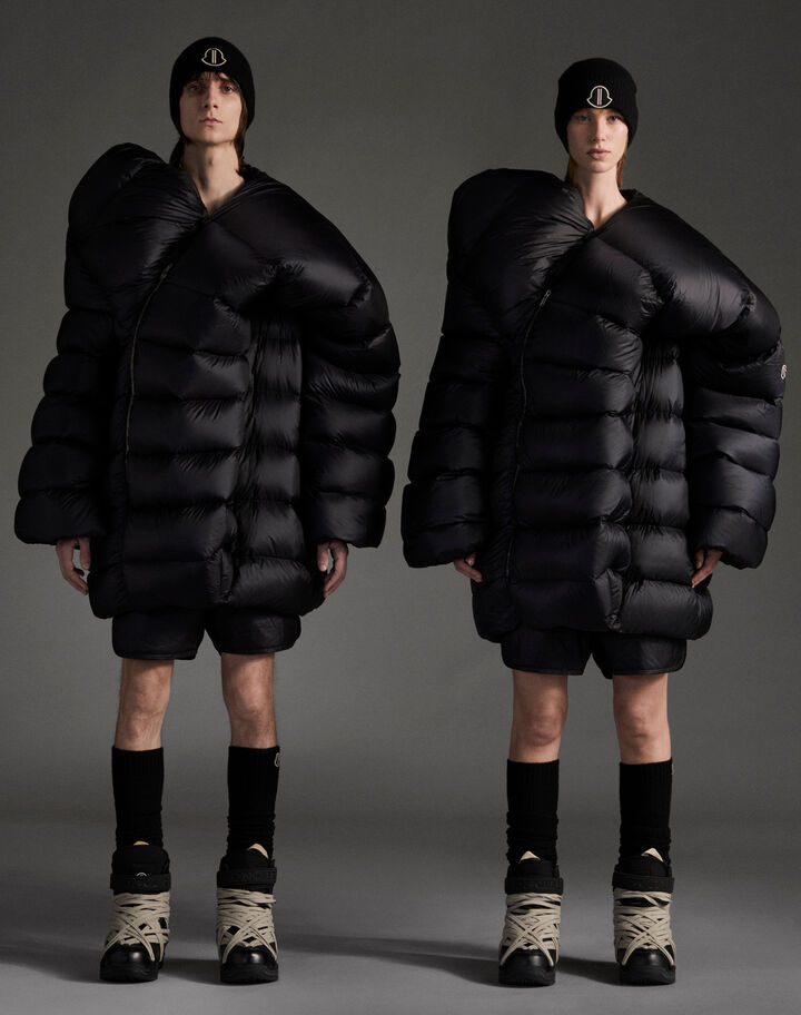 O casaco, feito com nylon léger e com enchimento de penas, adequado tanto para homens como mulheres, é descrito também como tendo uma “atitude sofisticada que interpreta as regras das roupas de rua contemporâneas de uma forma conceitual”.