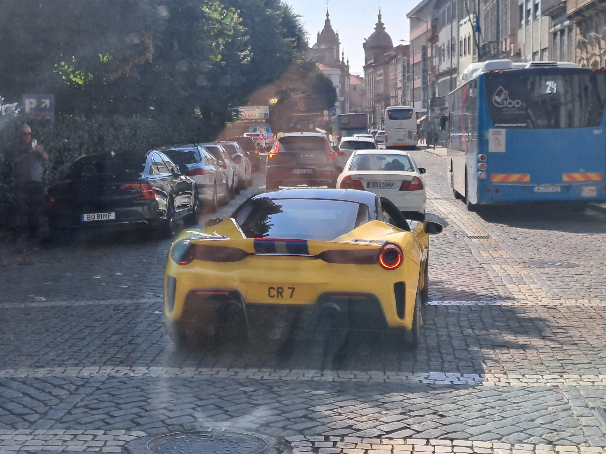 CR7′. Esta é a matrícula personalizada de um Ferrari 488 Pista avistado esta segunda-feira nas ruas de Braga – que tem uma referência clara ao futebolista internacional português Cristiano Ronaldo.