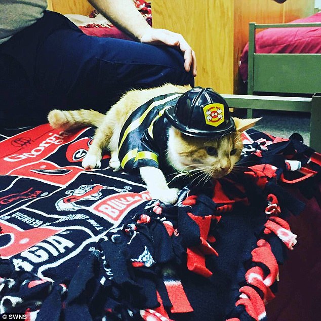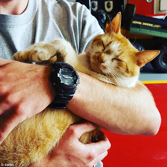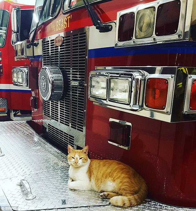 Chamado de Flame, ele é o mais novo membro do quartel. Os bombeiros contam que, no início, ficaram com receio de adotar um gatinho, pois não sabiam como lidar com um animal de estimação, mas foi só uma questão de tempo para aprenderem a cuidar dele e a acostumarem-se com a sua presença.