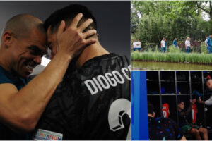 Um jovem adepto aproveitou a distração das forças de segurança e, depois de ter ‘fintado’ alguns elementos, correu em direção ao internacional português para apenas lhe tocar no braço, tendo sido rapidamente intercetado e levado para fora das quatro linhas.