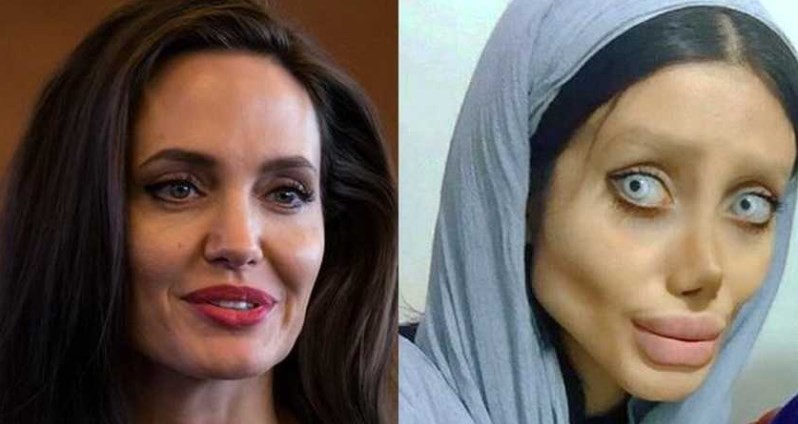 Uma fã iraniana de Angelina Jolie submeteu-se a 50 cirurgias para ficar parecida com a atriz norte-americana por quem tem uma obsessão.
