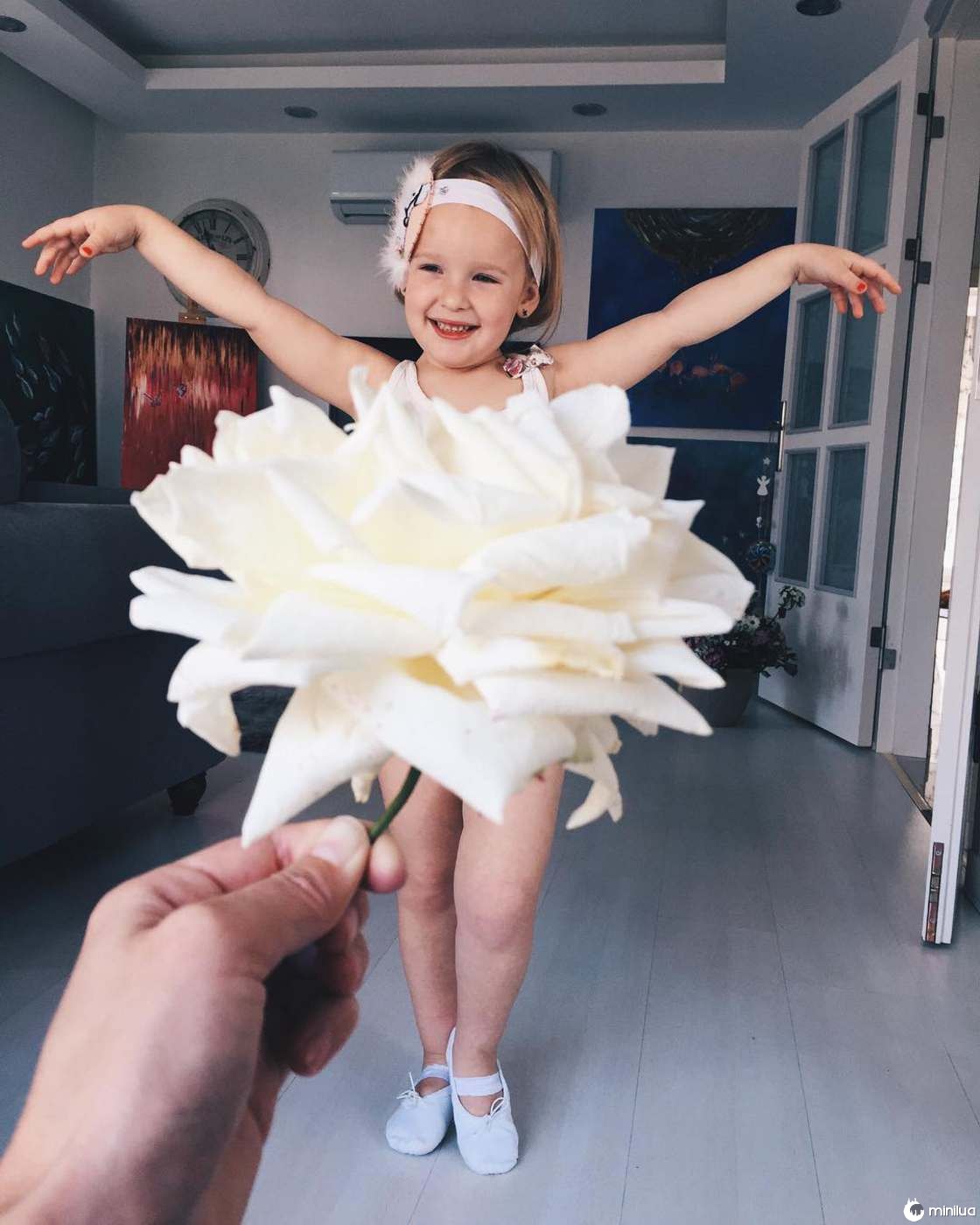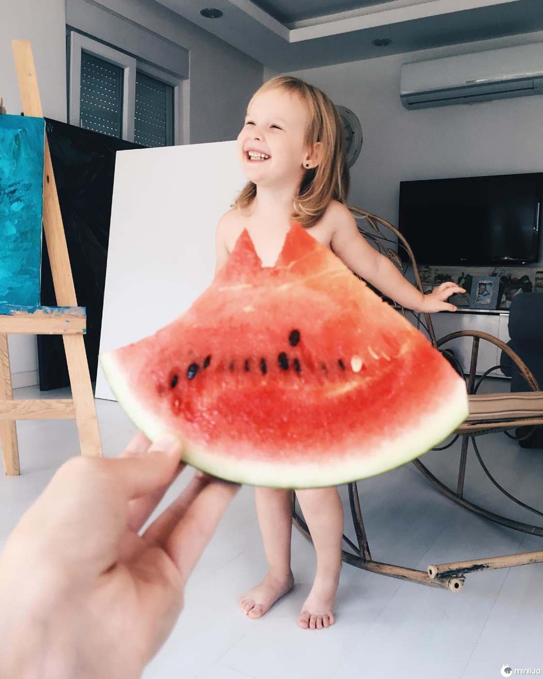 A pequena Stefani, com apenas 3 anos, adora servir de modelo para a sua mãe com vestidos invulgares e coloridos, feitos de flores, frutas ou legumes! Estas são algumas das fotografias colocadas na conta do Instagram em que diversão não falta.