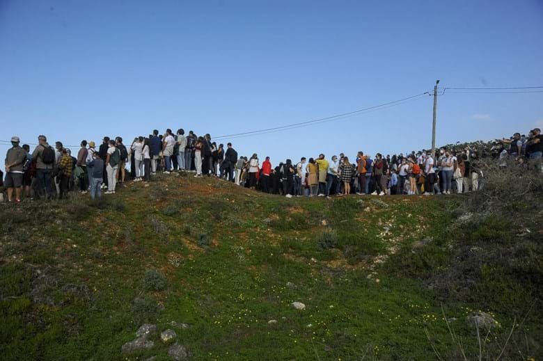 Milhares de pessoas concentraram-se esta quinta-feira nas arribas da praia do Norte, na Nazaré, na esperança de mais uma sessão de ondas gigantes, previstas para estes dias, mas não foi no mar que se fixou a atenção do acontecimento.