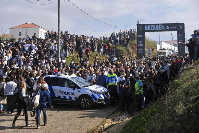 Assim, ao final da manhã, a Câmara e a Capitania da Nazaré decidiram cortar o acesso pedonal à estrada do Farol, que acede pelo Sítio na Nazaré, para tentar conter a excessiva concentração de público.