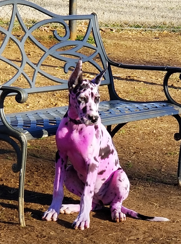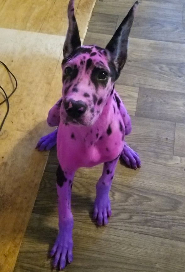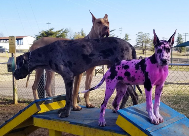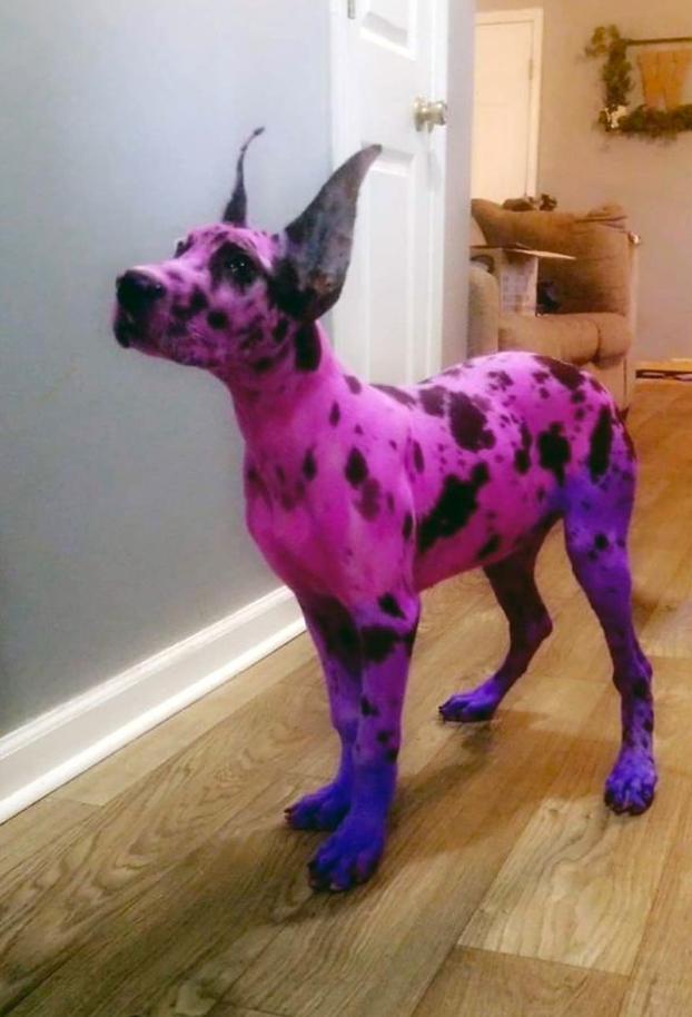 “As pessoas geralmente têm medo de cães grandes, e notei que algumas pessoas não se aproximam tanto dos meus cães quanto dos mais pequenos. Ao tingi-los, é mais fácil para as pessoas aproximarem-se porque perdem o medo, especialmente quando são rosa e roxo “, explicou a jovem.