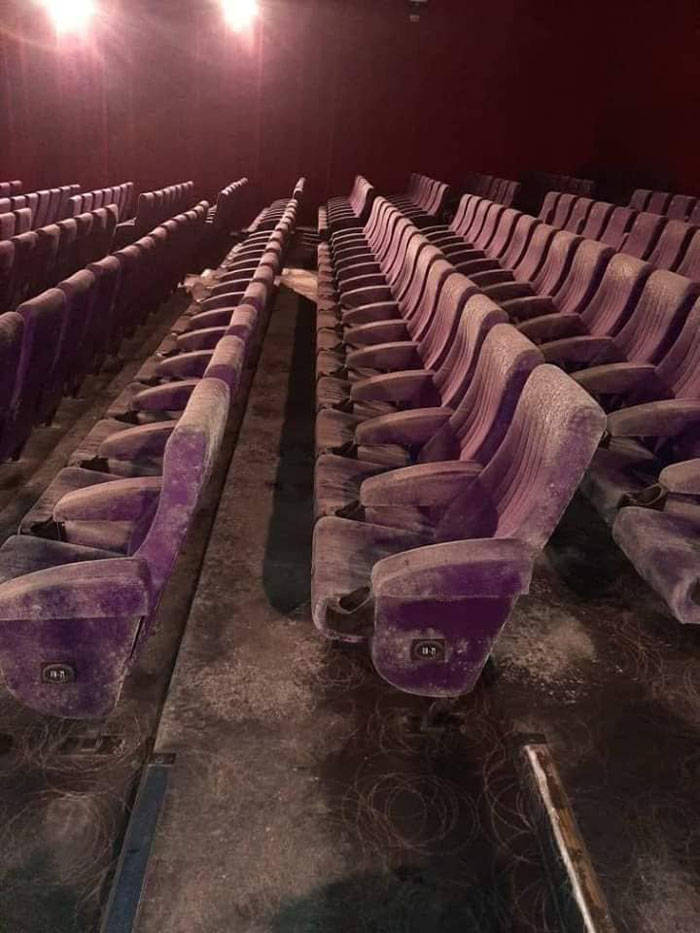 Na ausência dos seres humanos, outros locais, como cinemas, foram encontrados arruinados também eles pelo mofo: