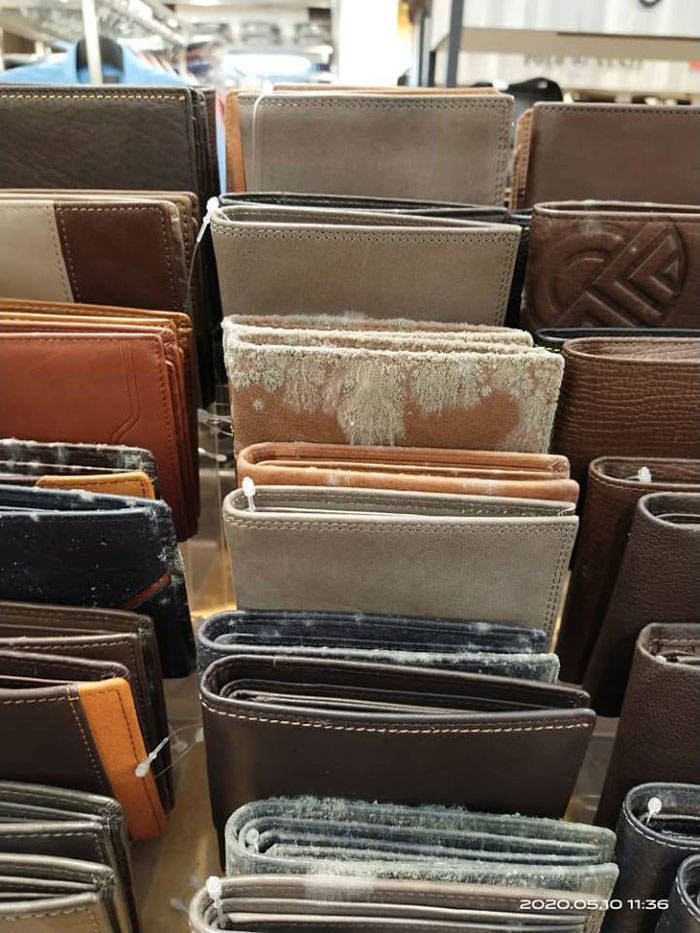 Foi o que aconteceu numa loja de produtos de couro, num shopping na Malásia, que após ter o ar condicionado desligado há quase dois meses, bolsas, sapatos e carteiras ficaram cobertos de bolor e mofo.
