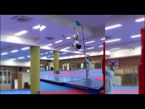 Num recente vídeo publicado na rede social Instagram é possível ver Kim Won Jin a fazer um pontapé de bicicleta a quase quatro metros do colchão.
