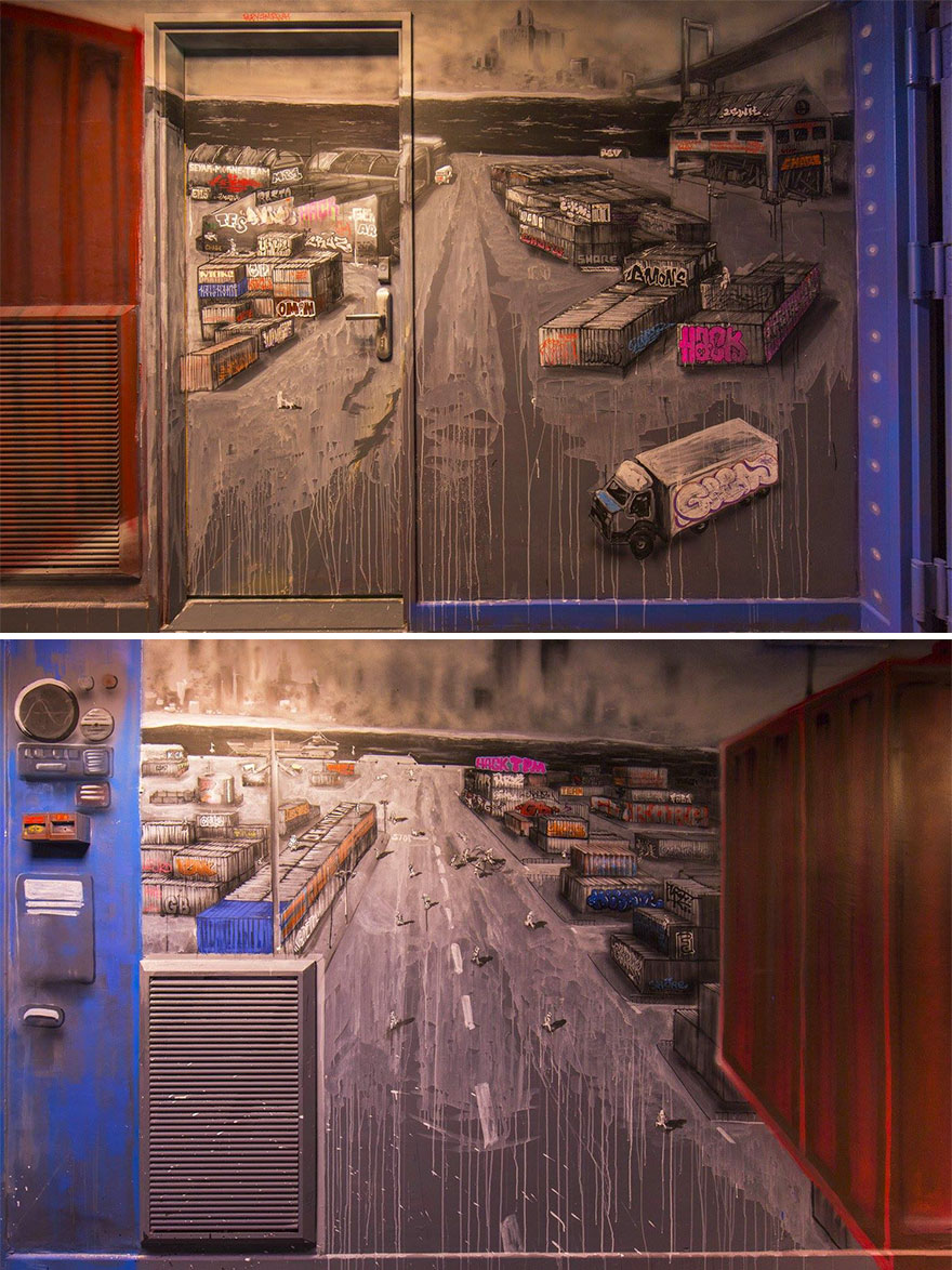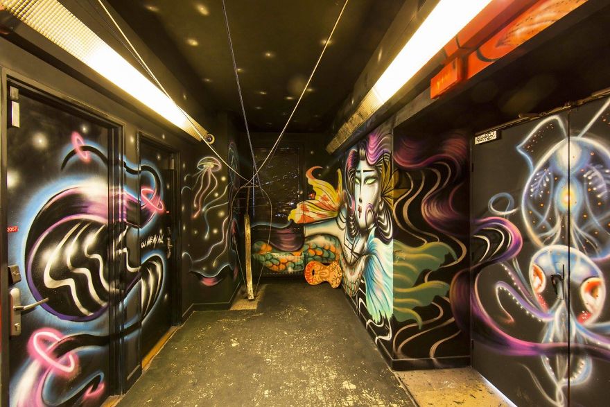 Para o grande projeto, que durou 3 semanas, 100 artistas de rua munidos de latas de tinta. Cada um escolheu um espaço e fizeram dele tudo o que quiseram. Tudo mesmo: cartoons, graffitis tridimensionais, exibições com o próprio material escolar e as mesas gastas das salas de estar.