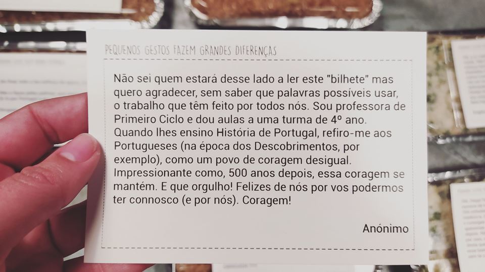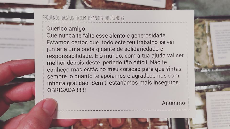 Além de oferecerem as refeições, ainda surpreendem os profissionais de saúde com uma mensagem de reconhecimento e força, vinda sempre de uma pessoa diferente.