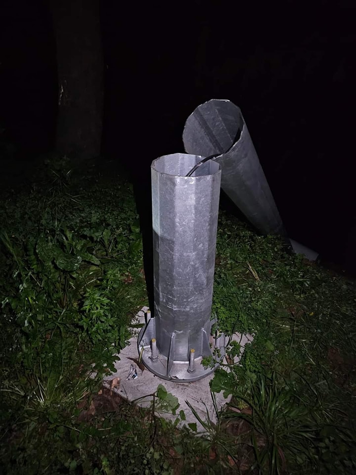 O radar, que foi instalado em setembro, foi cortado próximo à base, conforme é possível ver nas imagens.