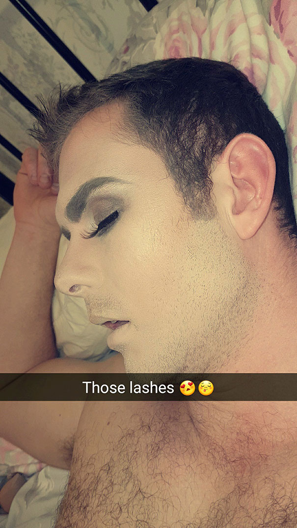 Para colocar o plano em ação, ela aproveitou o sono pesado do namorado e maquilhou-o… o resultado foi publicado na Internet e foi um sucesso!