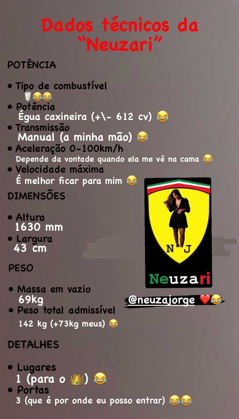 Nas imagens publicadas, a mulher de Ukra aparece descontraída em casa, enquanto o jogador faz uma comparação entre a sua esposa e um Ferrari. Ele detalha vários “benefícios” do carro e descreve características como o tipo de combustível, potência, peso e lugares.